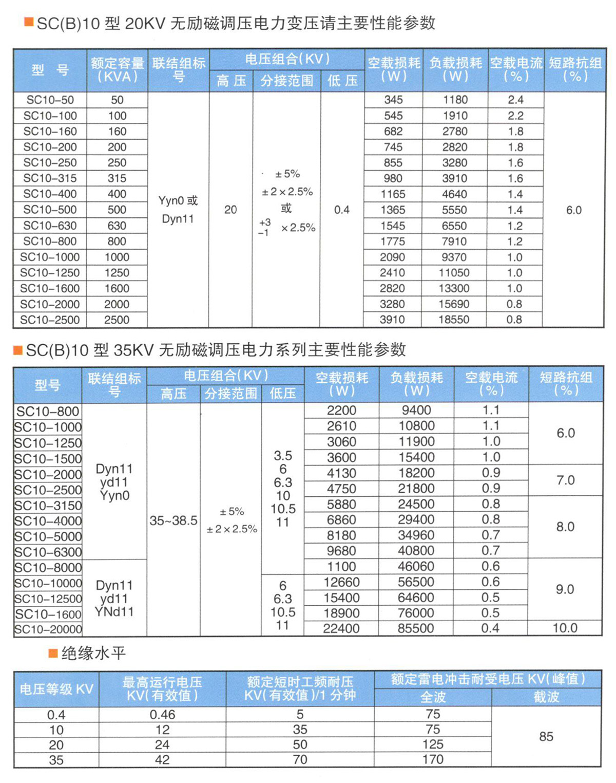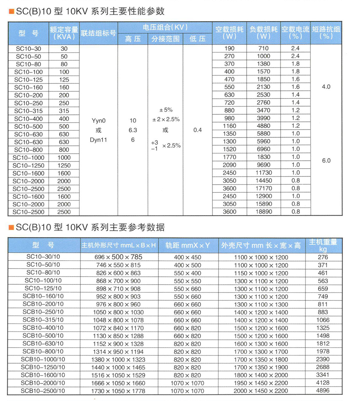 產品概述 本公司生產的干式變壓器其性能指標符合各項標準,經用戶使用證明,運行可靠,達到國家先進水平。該系列產品采用國外先進的制造技術,設計圖紙及技術文件齊全、正確、清晰,生產設備先進,制造工藝穩定,測定手段完備,為生產優質的產品提供了堅實的保障。 產品用途 SC(B)10型環氧樹脂澆注干式變壓器根據標準《干式電力變壓器》制造,本產品性能損耗低,節能效果好,運行經濟,免維護。除工藝結構先進,抗短路、雷電沖擊水平高外,還具有阻燃、防潮、防塵、噪聲低等特點,可深入負荷中心。廣泛適用于高層建筑、機場、車站、碼頭、電廠、變電站等。特別適合于易燃易爆等防火要求高的場所安裝使用。 本公司生產的標準型變壓器為不帶外殼,防護等級為IP00,如客戶需要提供防護等級為IP20和IP23的外殼:外殼可根據客戶要求選用普通鋼板、不銹鋼板、鋁合金等材料制作,并作酸洗、磷化、噴塑等處理。溫度控制顯示儀、負荷測錄儀安裝在外殼低壓側,方便用戶觀察,安全可靠。 性能參數 1、SC(B)10型主要性能參數見表 2、相數:3相 3、頻率:50Hz 4、絕緣耐熱等級:F級 5、繞組平均溫升:≤100K 6、局部放電量:小于5pc