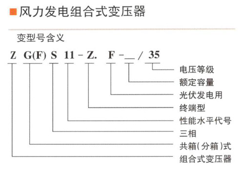 產品概述 風能是太陽輻射下空氣流動所形成的。風能與其它能源相比,具有明顯的優勢,它蘊藏量大,是水能的10倍,分布廣泛,用不枯竭,對交通不便、遠離主干電網的島嶼及邊遠地區尤為重要。目前,我國政府已經將節能減排和開發新能源提高到前所未有的戰略高度。當前風力發電已成為新能源的重要力量。為了配合國家風力發電的需要,我公司開發出兩個系列風力發電用變壓器。 ZG(F)SF11-Z.F- /35系列三相雙繞組無勵磁調壓風力發電組合式變壓器。 該系列產品將變壓器、油浸式負荷開關及高壓熔斷器安裝在油箱內,利用變壓器油作為整個產品的絕緣介質和散熱介質,低壓側配置必要的電器保護元件。具有運行可靠體積小,重量輕和安裝使用方便等優點。 正常使用環境條件及用途 海拔高度:2000m 環境溫度范圍:- 45C +45C戶外風速:≤35m/ s 相對濕度:日平均值≤95%,月平均值:≤90% 安裝地點:安裝在無火災,爆炸危險,嚴重污穢,化學腐蝕及劇烈震動的場所 超出以上正常使用環境條件,用戶可與本公司協商解決 適用于50Hz,35kY級風力發電系統,變壓器的額定容量為900- 3150kVA, 專用于風力發電 產品結構特點 產品分變壓器、高壓室和低壓室三部分,成“品”字形結構變壓器性能水平符合新型S11型標準要求 全封閉結構,安全可靠,結構合理緊湊,外形美觀,體積為普通預裝式變電站的1/3,減少占地面積具有良好的防腐能力,能有效防止風沙、雨雪和鹽霧侵蝕 高壓側采用避雷器、油浸式二工位負荷開關和熔斷器保護,熔斷器為--體式保護熔斷器高壓側的進出線殼采用瓷套管、干式套管或高壓T形電纜插頭 高壓室和低壓室隔離,箱體主要預裝有:避雷器、負荷開關、變壓器分接開關、保護熔斷器、油面溫度計、油位計、壓力釋放閥金 額放油閥等附件。低壓側配置690V主斷路器,過電壓保護器,并可成套設計安裝自動化測量與智能控制系統。
